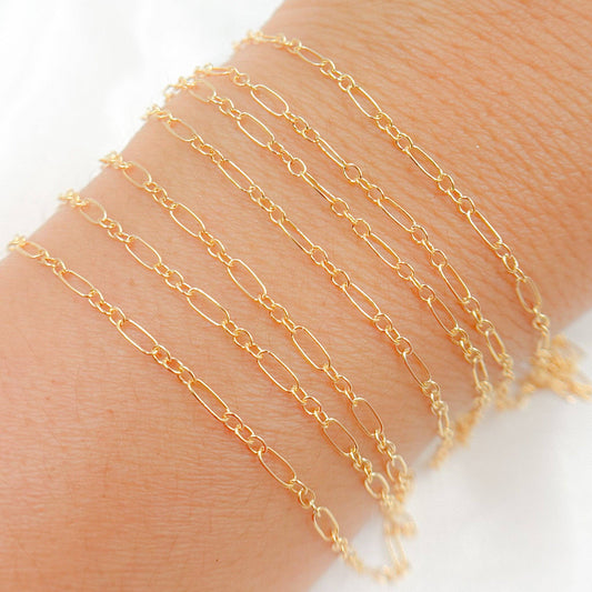 173GF. 14K Gold Filled Long & Short Link Chain: 1 Ft. / 2.1mm-3mm / Long & Short