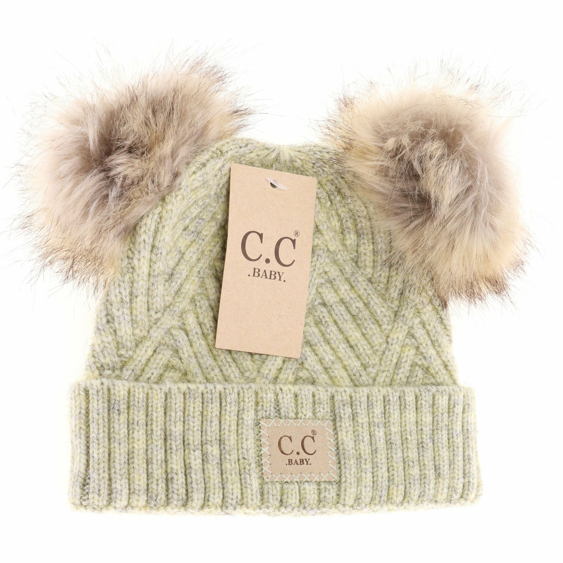 The hat of the season is now available in a baby double pom! This beanie features the popular new diagonal stitched suede logo with faux fur double poms for babies! We are in love! Plus, it compliments the adult HAT2060 and KIDS2060! Picture perfect!