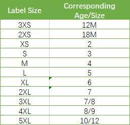 The actual size labels shipped are: 3XS, 2XS, XS, S, M, L, XL, 2XL, 3XL, 4XL, 5XL
