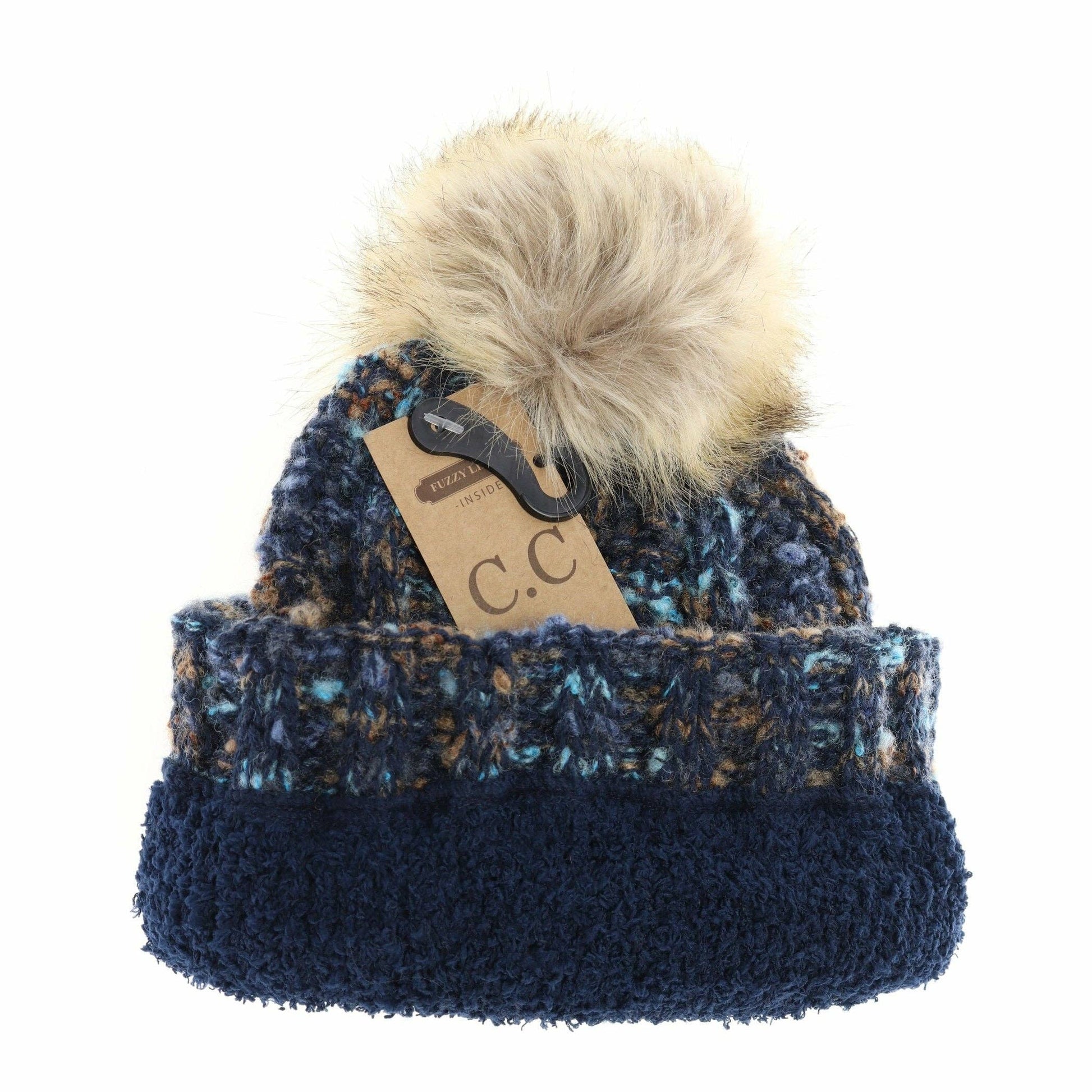 Fuzzy Lined Popcorn Confetti Fur Pom CC Beanie YJ824: Beige Multi