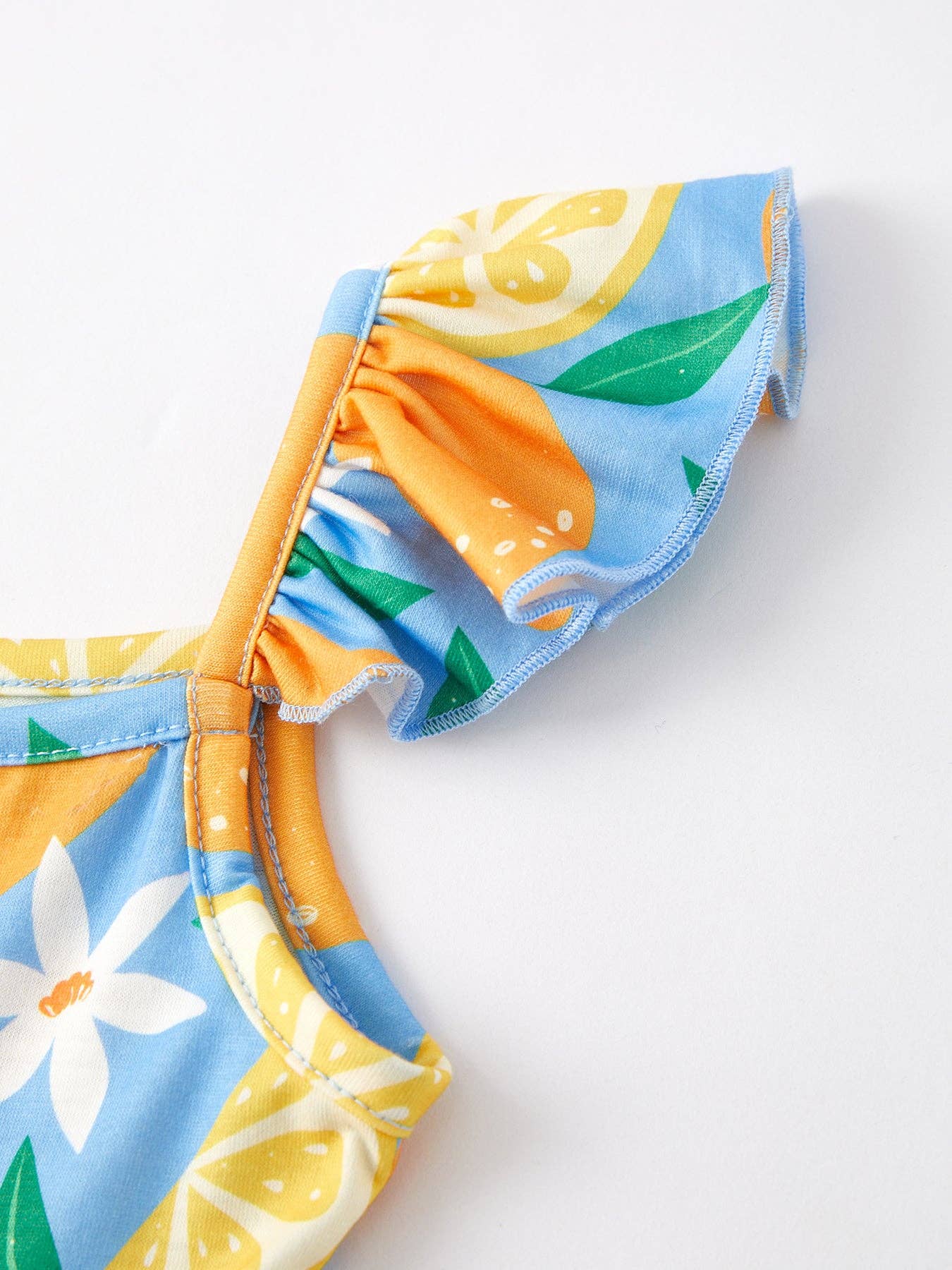 Girls Summer Lemon Floral Print Dress 2-Piece Set: 10/12