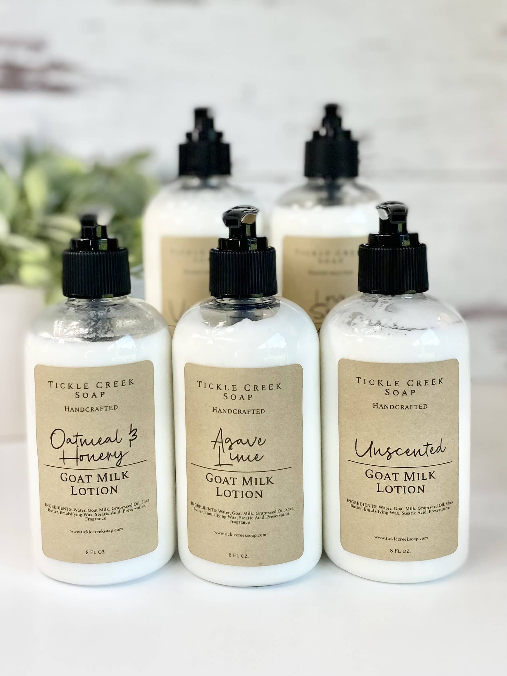 Goat milk lotion in a pump bottle is a convenient and easy-to-use moisturizer that contains goat milk as a key ingredient. Goat milk is known for its moisturizing and nourishing properties. It contains natural fats and proteins that help hydrate and soothe the skin. Goat milk lotion is formulated to provide lasting hydration, leaving the skin feeling soft and supple. This lotion has a lightweight and non-greasy texture, allowing it to be easily absorbed by the skin. The lotion spreads smoothly and evenly, providing a comfortable application experience. Goat milk lotion can benefit various skin types, including dry, sensitive, or irritated skin. It helps replenish moisture, soothe dryness or discomfort, and promote overall skin health. The nourishing properties of goat milk can also help improve the appearance of the skin, making it look smoother and more radiant. Goat milk lotion is suitable for use on various parts of the body, including hands, arms, and legs.