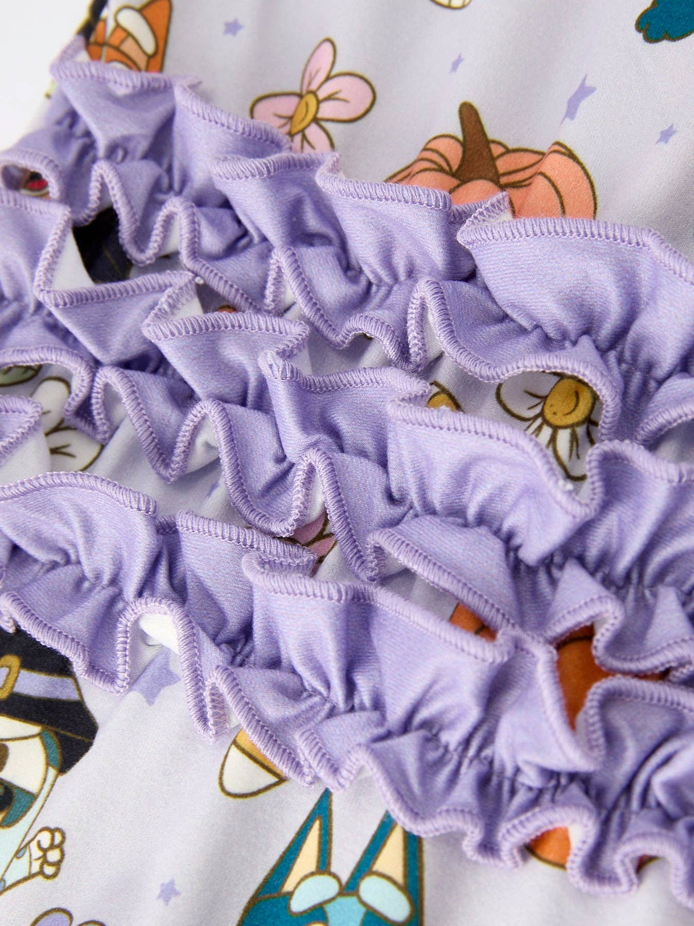 Dress your little one in festive fun with this Halloween Pumpkin Character Print Girls' Romper. Crafted for comfort and playful style, it features a charming pumpkin design that captures the spirit of the season. Perfect for parties or casual wear, this romper combines soft fabric with an easy fit, letting your child move freely while looking adorable. Make Halloween memorable with a cozy outfit that stands out!