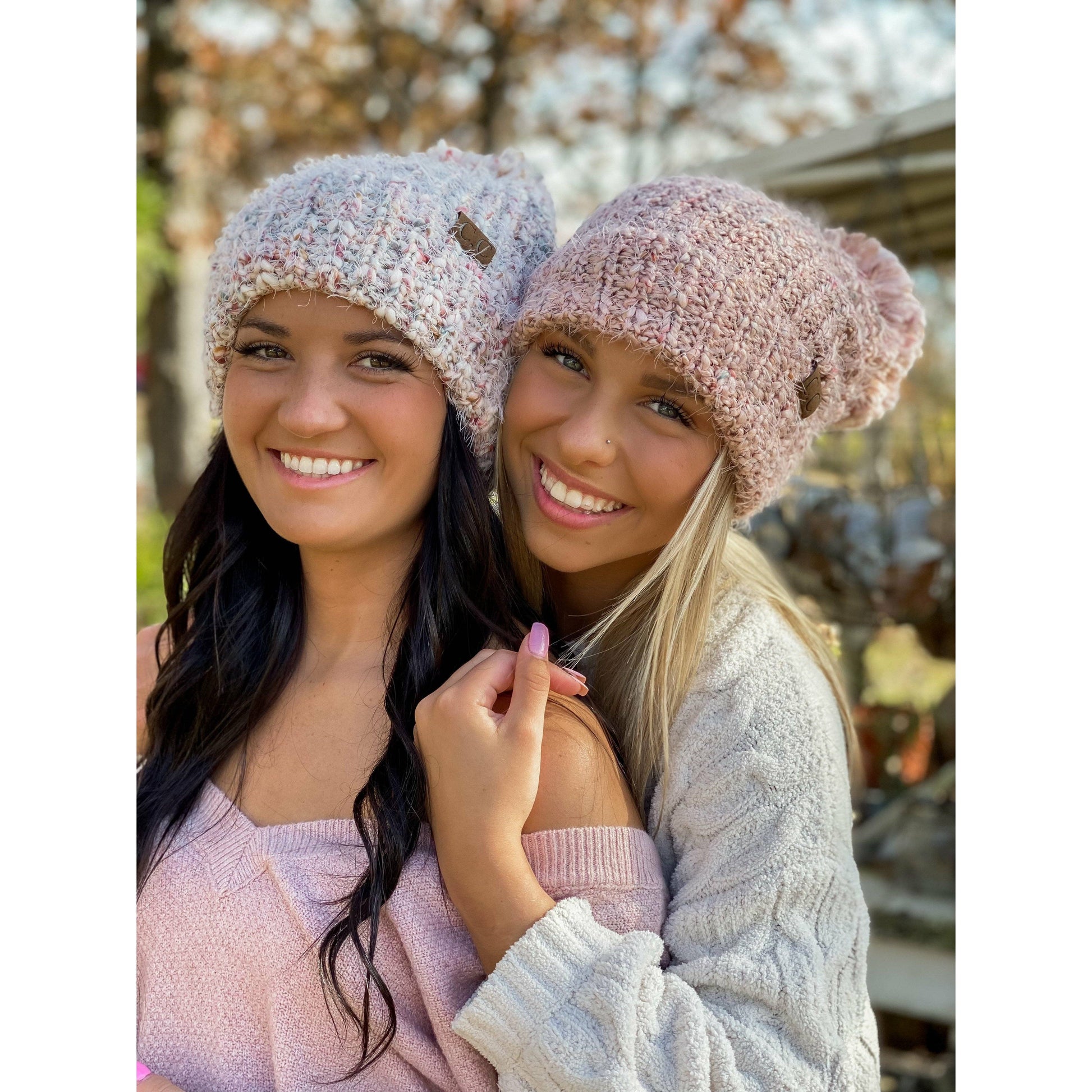This very, very soft knit beanie with a yarn pom is available in sweet pastel colors. Grab one for your beanie collection!