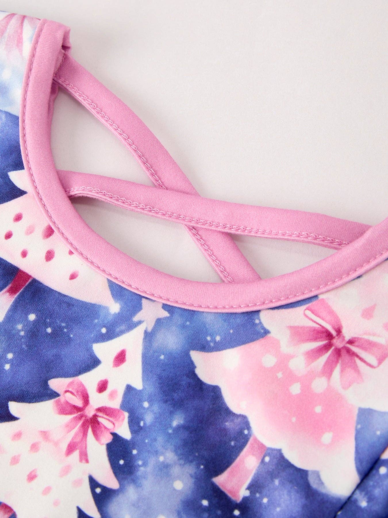 Winter Purple Christmas Tree Long Sleeve Ruffle Pocket Girls Dress: 2